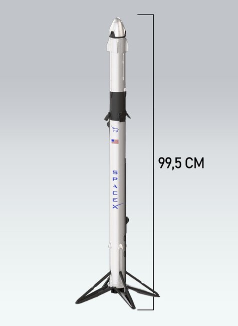 Com seus trens de pouso abertos, grid fins e pintura realista, o modelo representa fielmente a combinação de engenharia avançada e ousadia tecnológica que marcou a nova era da corrida espacial.